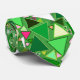 Tie in a Mid-Century Modern geometric mosaic of outlined triangles in shades of emerald and lime green, fuchsia and white on a deep lime green background