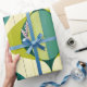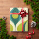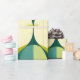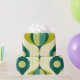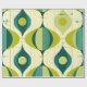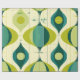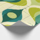 This artwork features a striking mid-century modern pattern composed of bold, abstract shapes and curves. The design is chraacterised by a repeating motif of elongated ovals and teardrop shapes in varying shades of green, teal, and yellow. Set against a light cream background with subtle distressed textures, the pattern creates a sense of depth and movement. The retro-inspired colour palette and geometric forms give the composition a vintage yet timeless appeal, making it a vibrant and eye-catching piece.