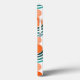 This phone case has a mid-century modern design of teal waves and orange circles.