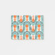 These Post-It notes have a mid-century modern design of teal waves and orange circles.