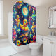 shower curtain, a stylish piece from the “Rubber Ducky Whimsical Adventures” collection by H2OArt by AlexSandra. This design features red, yellow, and green rubber duckies floating under a starry sky with a large full moon. The mid-century modern motif is highlighted by the bold colours and patterns, creating a whimsical and playful scene. Perfect for adding a touch of retro charm to your bathroom decor, this shower curtain celebrates the joyful spirit of rubber duckies in a unique and imaginative way. Children will love this adorable bath decor, transforming bath time into a delightful experience.