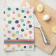 Mid Century Orange, Gold, Teal Dots and Stripes kitchen towel. Fun and cheerful design. This design is perfect for anyone.