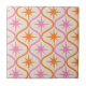 Mid Century Orange Pink Starbursts on Ogee Pattern Ceramic Tile