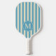 Mid-Century Polo Striping Aqua Sky Monogram Pickleball Paddle