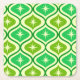 Mid Century Retro Starbursts On Green Ogee Pattern Square Paper Coaster