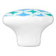 This is mid century modern atomic stars in blue and teal pattern on white background. It's great looking ceramic knob for anyone who love atomic era designs.