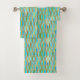 Mid-Century Ribbon Print, Blue, Turquoise and Tan Bath Towel Set