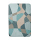 This midcentury art inspired pattern shows rock-like shapes in layers, creating shades of teal, blue-green and gold.