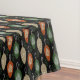 Festive tablecloth with mid century Scandinavian colour scheme pine cone style ornaments with folk art stencil embellishments on black background