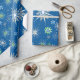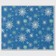 Mid-Century Snowflakes Galore On Blue Wrapping Paper