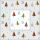 A 20th century modernist inspired abstract art design, with mid century modern styled winter trees in a forest, with simple minimalist snowflakes.