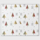 A 20th century modernist inspired abstract art design, with mid century modern styled winter trees in a forest, with simple minimalist snowflakes.