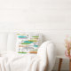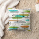 Retro Inspired Pillow Design, Mid Century style hand drawn by artist. Teal, green, gold, grey and orange are the colours of this retro fabric recreation.
