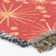 Digital reproduction of a Mid-Century Modern wallpaper pattern of spiked spheres inspired by the original Russian "Sputnik" satellite - shades of coral, orange, gold and white on a deep, tomato red background