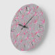 Mid Century Sputnik pattern, Grey and Fuchsia Large Clock