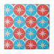 Mid Century Starbursts on Blue and Red Circles Ceramic Tile