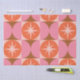 This is elegant mid century retro starbursts on orange circles with pink half circles on squares