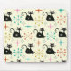 Mid Century Starbursts with Black Atomic Cat Mouse Pad