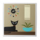 Mid Century Tabletop Cat with Ball Clock Ceramic Tile