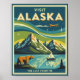 Great quality, mid-century, Alaska travel poster complete with bear, mountains and lakes along with the caption "Visit Alaska The Last Frontier."