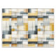 This mid century style pattern features orange, red, and black geometric shapes against a beige background.
