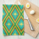Mid Century Yellow Stars on Retro diamonds Pattern Tea Towel
