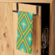 This is elegant yellow mid century atomic starbursts on harlequin  diamonds  pattern in teal, red and green. It's great looking kitchen towel  for anyone who love mid mod designs