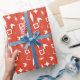 Mid mod atomic pattern gift wrapping paper in red for the holidays.