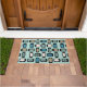 Midcentury MCM Rounded Rectangles Aquamarine Doormat