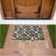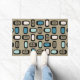 Midcentury MCM Rounded Rectangles Gold Blue Doormat
