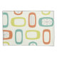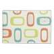 A simple minimalist 1950s abstract art pattern with rounded rectangles and sputnik starbursts in chartreuse, turquoise and orange.