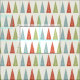 This patterned fabric is perfect for crafting Christmas gifts and home decor. This material has sleek and modern style illustrations of Christmas trees in red, light green and light blue set against a light cream coloured background.