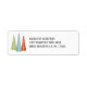 These return address labels are perfect for sending out your Christmas cards. They feature illustrations of three Christmas trees in a simple, modern style. The trees are in light green, light blue and red with white accents. Your name and address appears beside the graphic in a modern style black font.