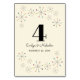 Create a beautiful and elegant personalised wedding table number card. This card features a fun retro vibe with a Mid-century Modern style design. Colourful atomic asterisk or snowflake shapes decorate the top and bottom. The black asterisk shapes are tipped with circles of blue, magenta, green, orange and yellow and are set against a cream or ivory background. Use the template fields to easily personalise this with your information.