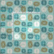 Midcentury Pattern Oblongs Aquamarine Gold Fabric