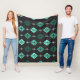 Midcentury Starbursts Diamonds Black Turquoise Fleece Blanket