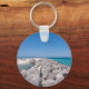 Keychain customisable with your initials featuring a view looking out at the beautiful Emerald Coast of the Gulf Of Mexico in the middle of a rock Jetty at Shell Island, in Panama City Beach, Florida. Looking for more products? Visit my store: http://www.zazzle.com/timelessmomentsphtgy