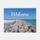 Customisable welcome doormat featuring view looking out at the beautiful Emerald Coast of the Gulf Of Mexico in the middle of a rock Jetty at Shell Island, in Panama City Beach, Florida. Looking for more products? Visit my store: http://www.zazzle.com/timelessmomentsphtgy