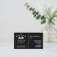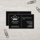 A business card template with a centre rule layout and decorative crown logo. The theme is repeated on the back, which can be left blank, cleared or additionally customised. The logo can also be replaced with your own logo.