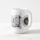 Middlesex Hospital mug with black and white copy etching with two badges. ALL PROFITS GO TO THE MIDDLESEX HOSPITAL NURSES' BENEVOLENT FUND