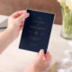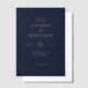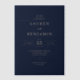 This is a classic style image featuring an elegant navy blue wedding invitation. The design is simple yet sophisticated, with gold text that adds a touch of luxury and warmth. It announces the union of Lauren and Benjamin on Saturday, May 23, 2026, at Willowbrook Estate in Atlanta, Georgia, followed by dinner and dancing. The layout is clean and balanced, making it perfect for those who appreciate timeless elegance and understated grace.