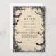 Set the scene for a chilling celebration with this haunted gothic Halloween design. Featuring vintage black bats in flight against an aged parchment background, framed by eerie vines and foliage, it’s perfect for a darkly elegant gathering. A mysterious and timeless design that invites your guests into a night of thrills and shadows.