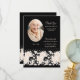 The midnight black background features an oval photo window and a thick "lace" border with tiny polka dots. A beautiful remembrance for a loved one.