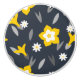Retro flowers and leaves in white, grey, & ochre yellow over a midnight blue background. Background colour can be changed.