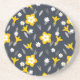 Retro flowers and leaves in white, grey, & ochre yellow over a midnight blue background. Background colour can be changed.