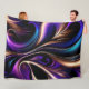 Midnight Bloom - Deep Purple, Teal & Gold Abstract Fleece Blanket