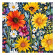 A vibrant and colourful floral seamless pattern featuring a variety of flowers in bloom against a dark background. This all-over-print design is perfect for fabrics, wallpapers, and other creative projects.