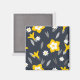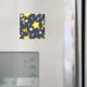 Retro flowers and leaves in white, grey, & ochre yellow over a midnight blue background. Background colour can be changed.