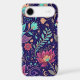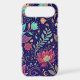 An opulent and vibrant seamless pattern featuring highly detailed, stylized lotus flowers and scrolling vines on a deep, navy blue or midnight purple background. The flowers burst with a psychedelic color palette of rich magenta, glowing purple, turquoise, and fiery orange. Intricate gold and teal accents, along with hidden celestial elements like tiny moons and stars, weave through the foliage, giving the design a mystical, bohemian, and slightly Art Nouveau feel. This bold, dark-background design is perfect for those who love maximalist style, fantasy art, and jewel-toned beauty.
