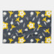 Retro flowers and leaves in white, grey, & ochre yellow over a midnight blue background. Background colour can be changed.